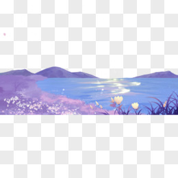 手绘免抠唯美湖面山川元素