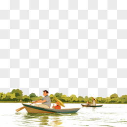 插画风夏天父亲和孩子在公园划船免抠元素