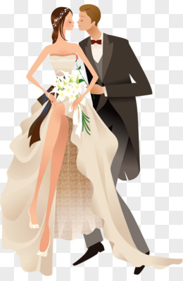 手绘插画风新郎新娘拍婚纱照免抠元素