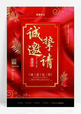 红色创意邀请函红色邀请函诚意邀请年会请柬简约