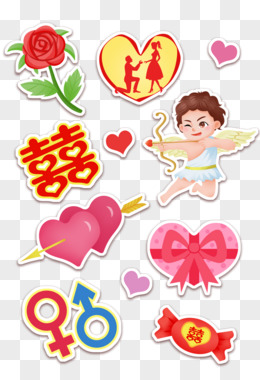 一组手绘婚礼趣味婚礼贴纸组图合集元素