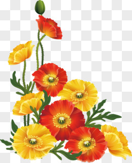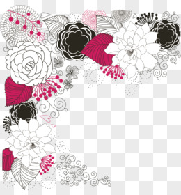 小花鲜花方形边框免抠元素