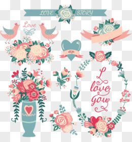 矢量婚庆花朵小鸟