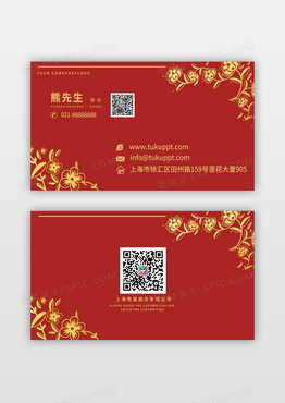 高端大气红色婚庆名片模板