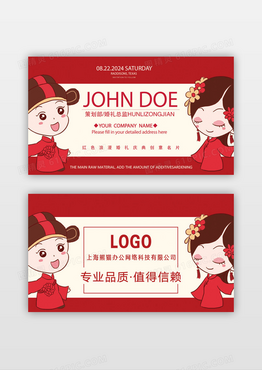 红色婚庆卡通小人浪漫婚礼庆典创意名片设计