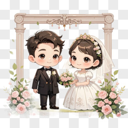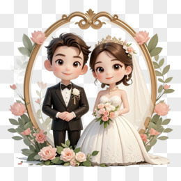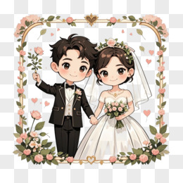 卡通情侣结婚免抠元素