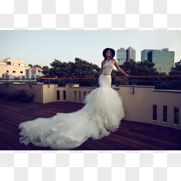 浅色象牙白长尾婚纱摄影图
