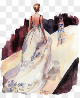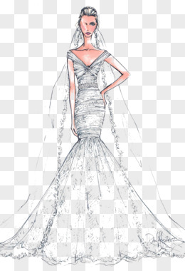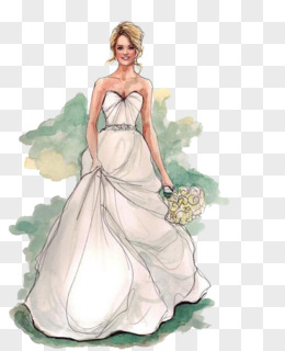 手绘礼服婚纱模特插画