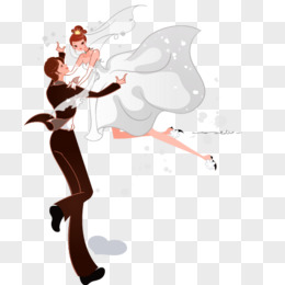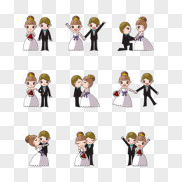 卡通新娘新郎与婚礼蛋糕矢量素材