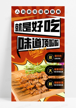 橙黒色烧烤烤串美食海报手机宣传海报