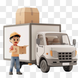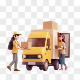 卡通卡车卸货工人搬运场景元素
