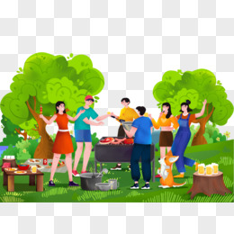 手绘卡通好朋友们户外烧烤派对元素