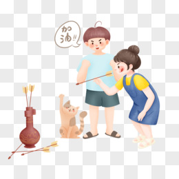 手绘现代成年人试玩古代文化娱乐活动投壶元素