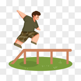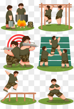 一组卡通学生暑假军事化夏令营训练套图之过障碍素材