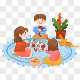 手绘卡通冬季女孩宅家吃零食插画免抠元素
