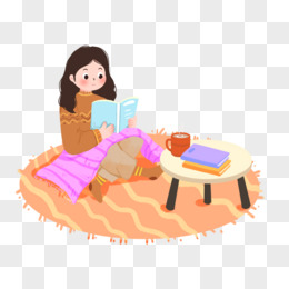 卡通冬日女孩宅在家看书插画元素