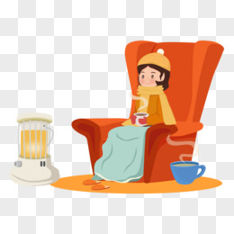 手绘卡通小女孩室内喝咖啡取暖素材