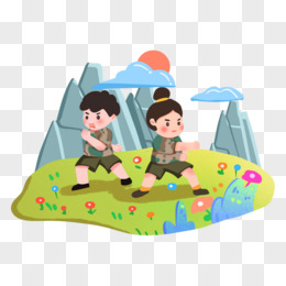 手绘卡通小朋友户外露营免抠元素