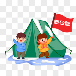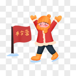 手绘卡通女孩参加冬令营滑冰免抠元素