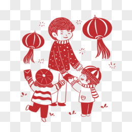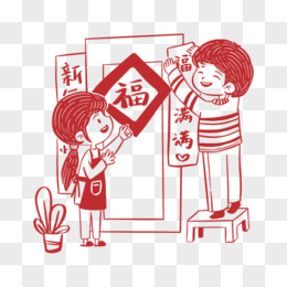 手绘卡通背着行军包的男孩与女孩免抠元素
