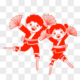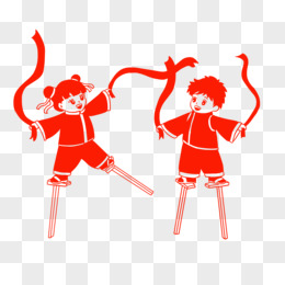 手绘卡通童男童女踩高跷剪纸免抠元素