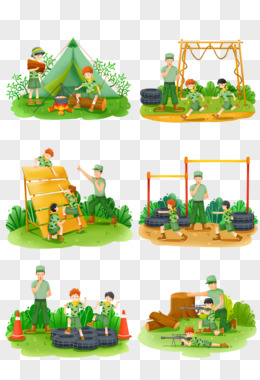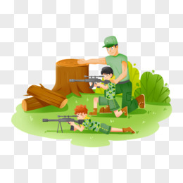 卡通矢量学生军事夏令营训练活动场景之打枪素材