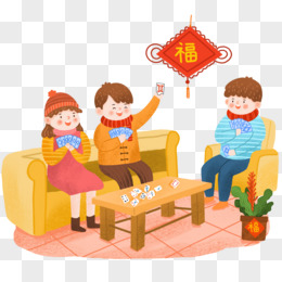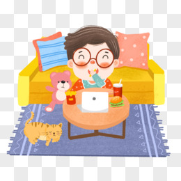 手绘卡通冬季女孩宅家玩手机插画免抠元素