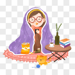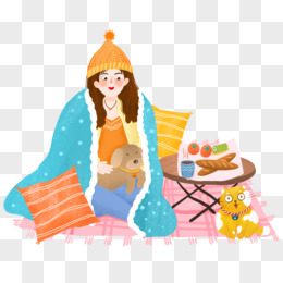 手绘卡通冬季女孩宅家保暖插画免抠元素