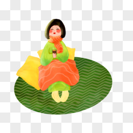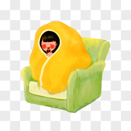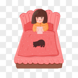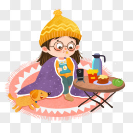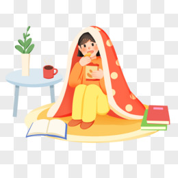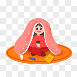 手绘卡通冬季女孩宅家家玩手机插画免抠元素