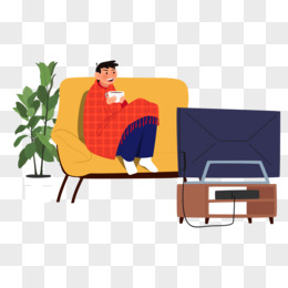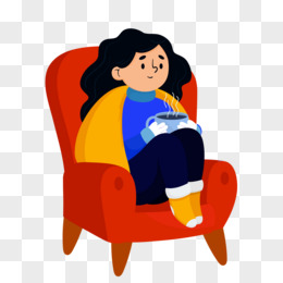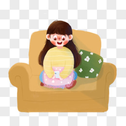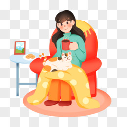 卡通手绘女孩冬季宅家玩手机免抠元素