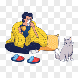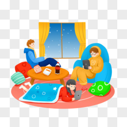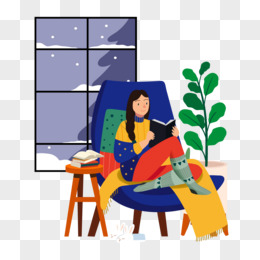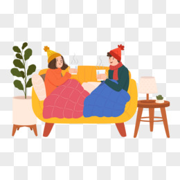 手绘卡通矢量男孩女孩冬季宅家免抠元素