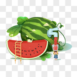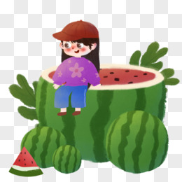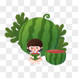 卡通手绘男孩在水池边吃西瓜微景观元素
