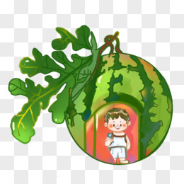 卡通小男孩躲在西瓜里乘凉微景观素材