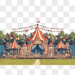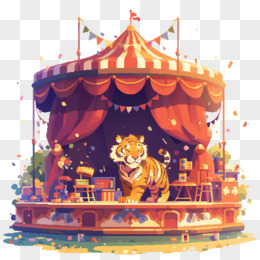 卡通舞台表演一个马戏团帐篷台免抠元素