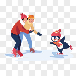 手绘卡通人与动物滑冰创意元素