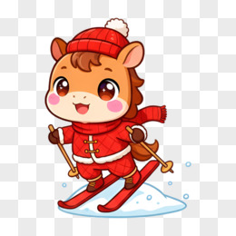 卡通手绘新年小马滑雪免抠元素