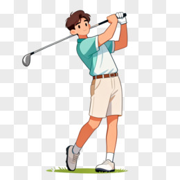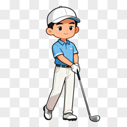 卡通一个男人戴着帽子打高尔夫免抠元素