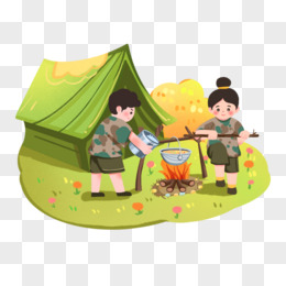 一组卡通手绘插画风学生军事夏令营项目合集之户外烹饪元素