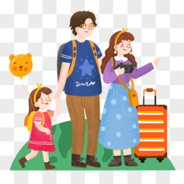 手绘卡通一家人玩打水仗游戏插画免抠元素