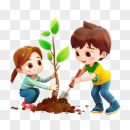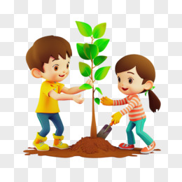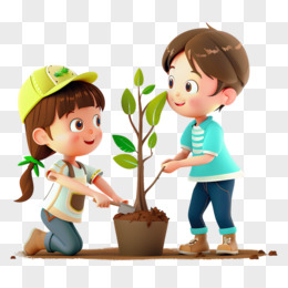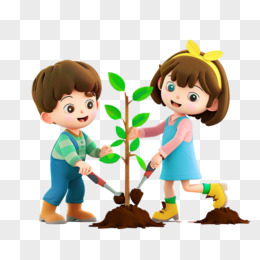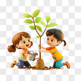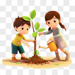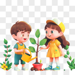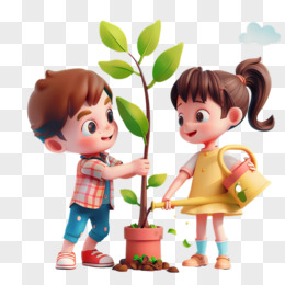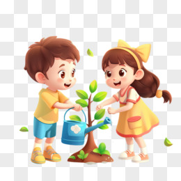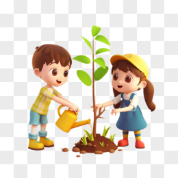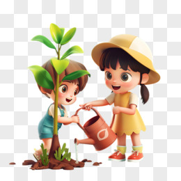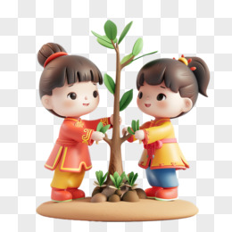 穿古装的可爱儿童植树节给树苗浇水卡通3D元素