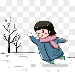 打雪仗的女孩插画