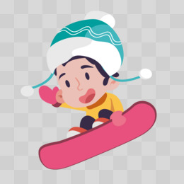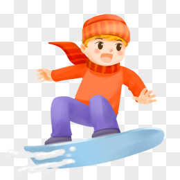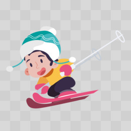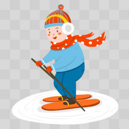 手绘男孩冬天滑雪免抠元素
