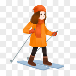 手绘冬天女孩滑雪橇免抠元素