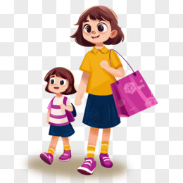 手绘插画女孩开心购物免抠元素