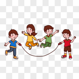 卡通手绘儿童团体跳绳玩耍免抠元素