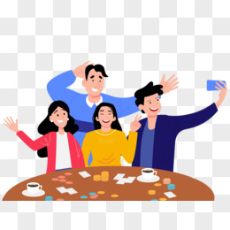 卡通手绘朋友聚会拍照免抠元素