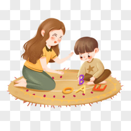 卡通手绘妈妈与孩子互动玩耍免抠元素