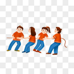 手绘卡通人物拔河团建游戏免抠元素