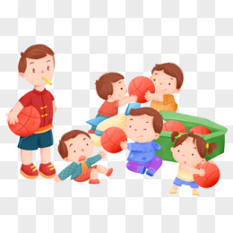 卡通手绘过年聚会打麻将免抠元素