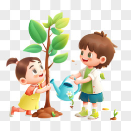 可爱儿童植树节给树苗浇水卡通3D元素